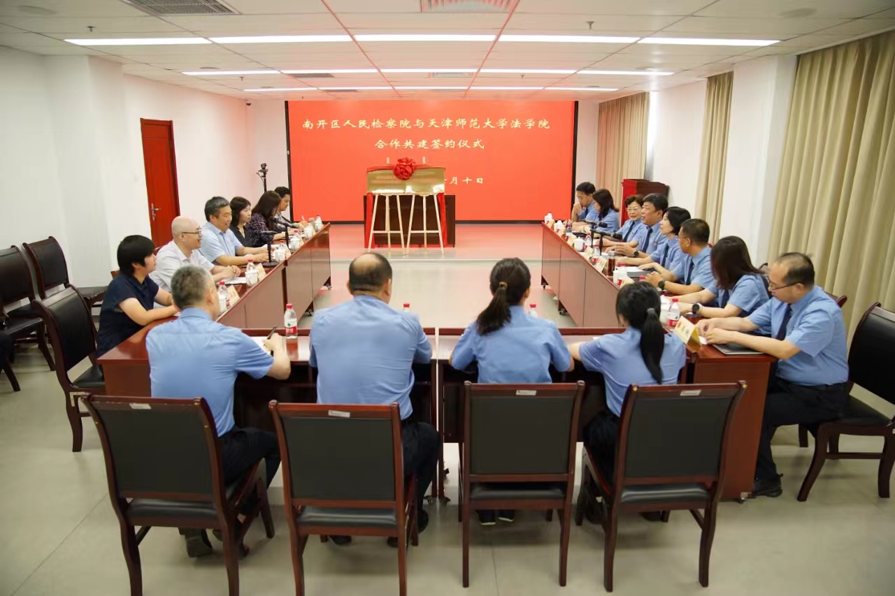 法学院消息(通讯员 王欣)近日,法学院与南开区人民检察院合作共建签约揭牌仪式在南开区人民检察院会议室举行。南开区人民检察院检察长郑国振,副检察长张越、杨蕊、杨茂文、魏军,政治部主任梁迎春,检委会专职委员王俊德、李铁及第五检察部主任姚大军与部分干部,我校法学院院长郝磊,副院长曲佳丽、郭明龙等参加签约仪式。